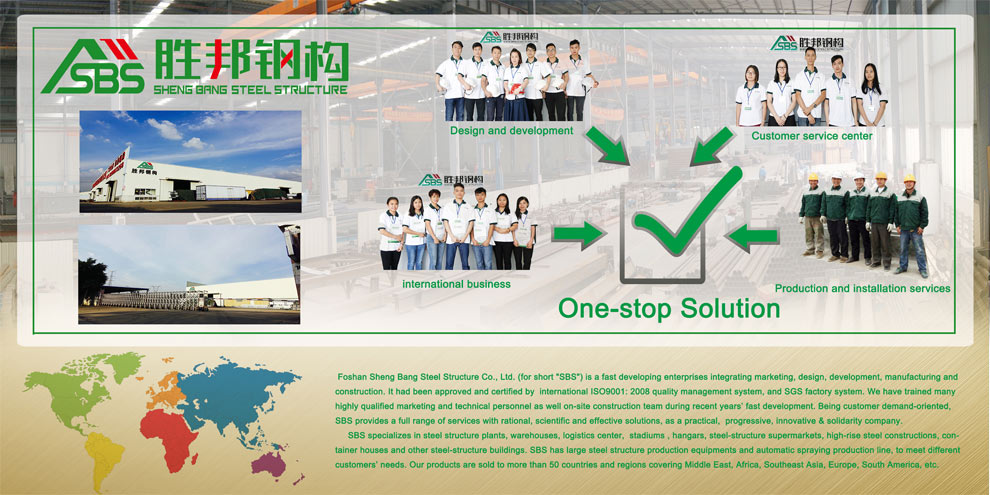 佛山市勝邦鋼結(jié)構(gòu)有限公司(簡稱“勝邦鋼構(gòu)”ompos.cn)是一家集合營銷、設(shè)計(jì)、研發(fā)、制造、施工為一體,專業(yè)承建鋼結(jié)構(gòu)建筑的發(fā)展型企業(yè)。并通過國際ISO9001:2008質(zhì)量管理體系認(rèn)證和SGS工廠體系認(rèn)證。近年的飛快發(fā)展,培養(yǎng)了一大批高素質(zhì)營銷、技術(shù)人才和現(xiàn)場施工隊(duì)伍,勝邦以客戶需求為導(dǎo)向,為客戶提供合理的、科學(xué)的、有效的解決方案,以務(wù)實(shí)進(jìn)取、不斷創(chuàng)新、團(tuán)結(jié)一致的精神為客戶提供全方位的服務(wù)。
