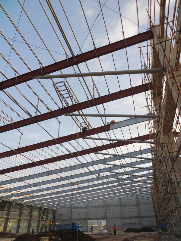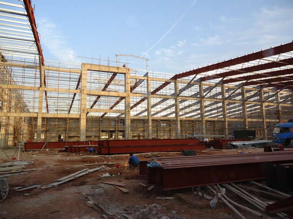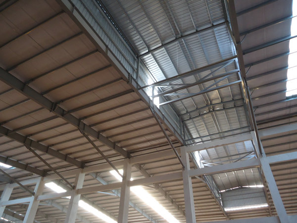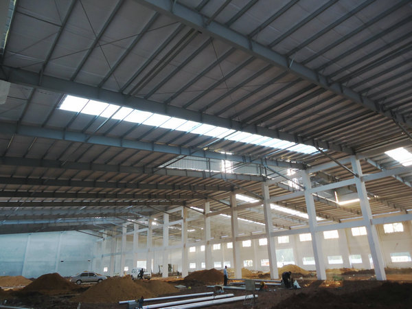 大瀝精工廠房位于佛山市南海區(qū)獅山大瀝。占地面積為15200平方米,主鋼架結(jié)構(gòu)采用混凝土柱和H型焊接鋼梁相結(jié)合方式。墻體用磚墻,屋面用單彩板。屋面布置通風(fēng)氣樓以此為空氣循環(huán)使用。以下是部分廠房安裝圖片: