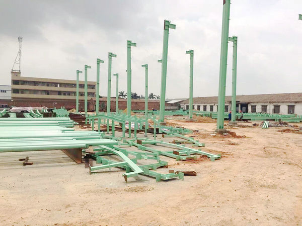 獅山廠房位于廣東省佛山市南海區(qū)獅山鎮(zhèn)。廠房由佛山勝邦鋼結(jié)構(gòu)有限公司加工生產(chǎn)。占地面積為5000平方米,分兩棟建筑完成。鋼架采用綠色的環(huán)氧漆做防銹處理。廠房設(shè)有頂部通風氣樓,能更好的讓空氣流動。以下為部分圖片展示: